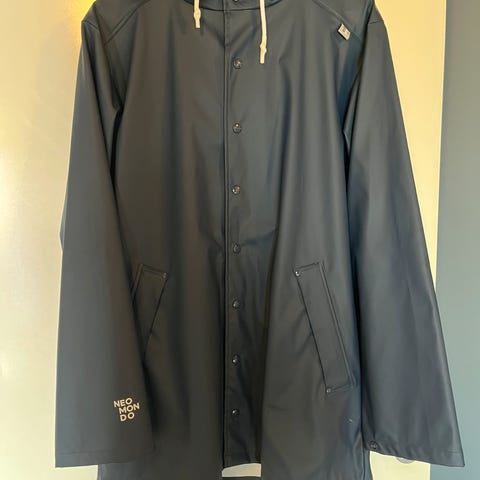 Den er svart, vanntett og kan brettes ned i lommen. Veldig praktisk når du skal ha med den en pakk-bar jakke i tilfelle det skal regne.