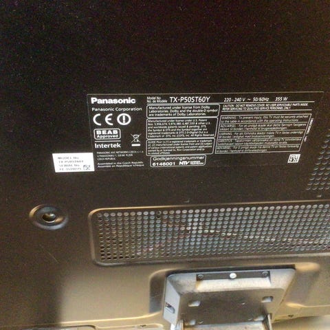 Modellen har flere tilkoblingsmuligheter, inkludert HDMI, komponent- og komposittinnganger samt SCART. Baksiden viser også antenneinngang og andre standard tilkoblinger for lyd og bilde. TV-en drives på 220–240 V og har merket effektforbruk på 221.