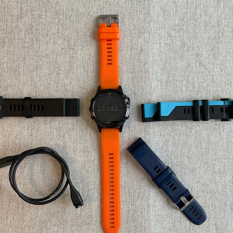 Garmin fēnix® 5 Plus Sapphire Titanium. Fungerer som det skal. Følger med laderen og esken