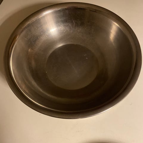 IKEA kjøkkenvekt med digitalt display. Vekten har sort overside med blått opplyst display og knapper for valg av måleenhet (UNIT) og tare-funksjon (TARE ON/OFF). Det følger med en bolle i rustfritt stål som kan plasseres i åpningen på vekten. Undersiden er hvit med batteriluke. Egnet til veiing av ingredienser på kjøkkenet, for eksempel ved baking og matlaging.
