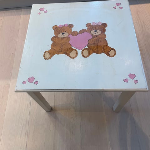 Bordet er i god stand, men brukt som hobbybord, derfor er det noe malingsøl(går sannsynligvis bort med litt vask).