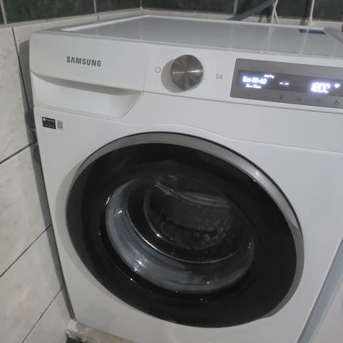 Samsung frontmatet vaskemaskin med kapasitet på 8 kg i hvit utførelse. Maskinen har frontåpning med glassluke og trommel i rustfritt stål. Betjeningspanelet består av programvelger og display med oversikt over vaskeprogrammer og innstillinger. Egnet for vanlig klesvask i husholdning, inkludert bomull, syntetiske materialer og finvask. Maskinen kobles til standard vann- og avløpstilkobling og har slange inkludert, slik det vises på bildene.