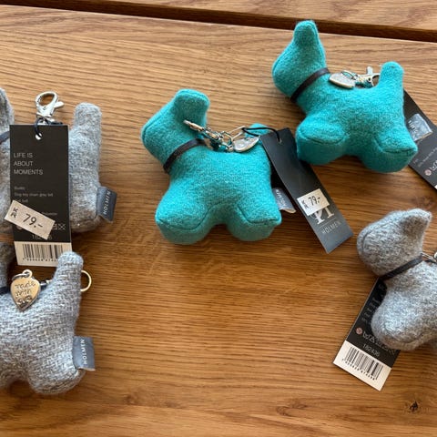 Nøkkelringer med pelsdetalj i ulike farger, inkludert rosa, grå og hvit. Laget av syntetisk materiale. Passer som tilbehør til nøkler eller vesker.