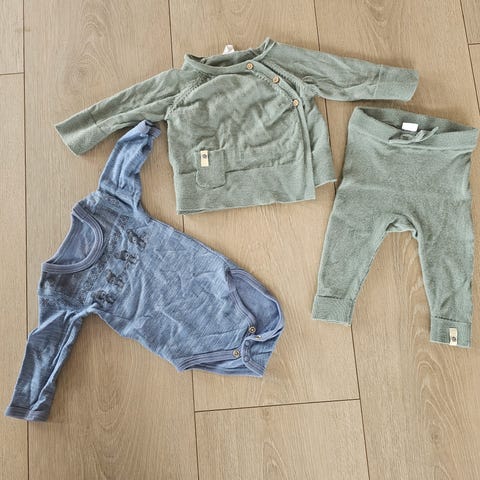 To deilige sett fra Joha og Hust and Claire i bambus. Deilig til den sensitive babyhuden. Godt som innerste lag, en stor favoritt i vårt hjem.