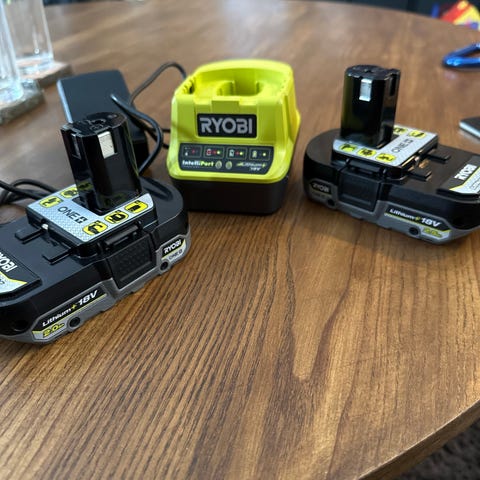 Batteri og lader følger med.