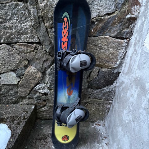 Snowboard med bindinger selges, brettet burde preppes.