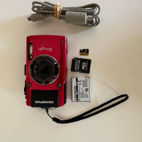 Selger et solid og brukervennlig Panasonic Lumix DMC-FT3 i tøff rød farge. Dette er det perfekte turkameraet som tåler både vann, støt og kulde.