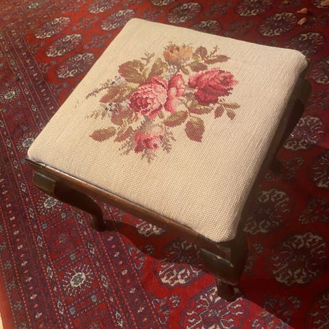 Gammel pidestall i tre i mørkebrun utførelse. Har fire rette ben og en firkantet plate nederst som gir ekstra stabilitet og kan brukes til eks blomst/pynt .