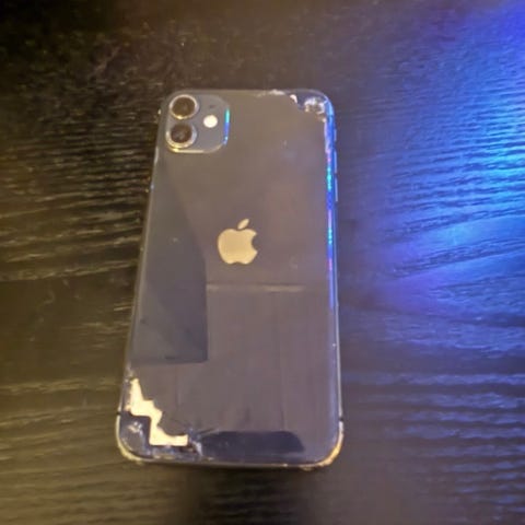 Apple iPhone 11 mobiltelefon med 64 GB lagringsplass i svart. Den fungerer fint, men har knust skjerm og bakside. Selges som den er, uten lader.