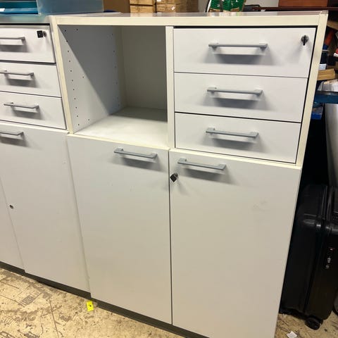 Skap med åpne hyller i brun utførelse. Skapet har flere faste eller justerbare hyller som egner seg til oppbevaring av dokumenter, permer eller annet utstyr. Passer til bruk på kontor, i bod eller andre rom der det er behov for enkel og oversiktlig lagring. Den kan dra ned en folle dør som man kan dra ned.vi har 4 stk av disse kommer fra en kjent møbel produsent fra Sverige