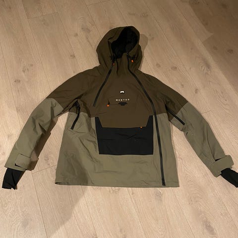 Montec skijakke. Lomme foran, glidelås under armene for lufting og mansjetter for å stoppe snø.