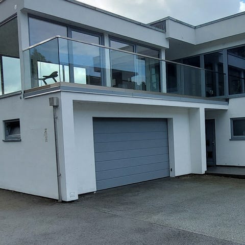 Pent brukt glassrekkverk i Aluminium med topprekke.