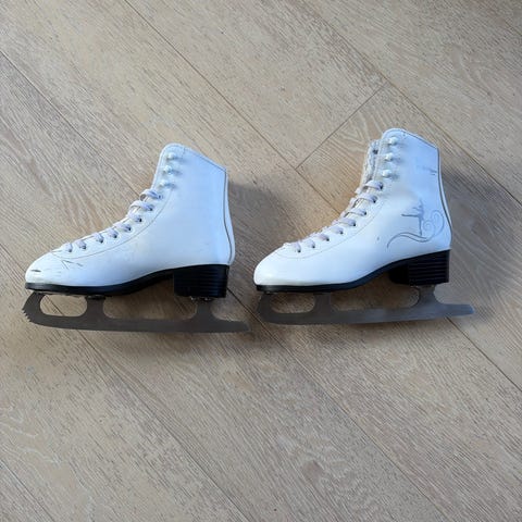 Northsport kunstskøyter i størrelse 37. Klassiske hvite skøyter med snøring og stålklinge. Egnet for bruk på isbaner og vann, til rekreasjons- og fritidsbruk. Overdel i syntetisk materiale med ankelstøtte og hæl i plast. Skøytene har tradisjonell klinge med tåtagg foran.