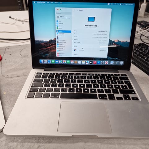 Apple MacBook bærbar PC i sølvfarget aluminiumskabinett. Modellen har innebygd skjerm, tastatur med bakbelyste taster og stor styreflate. Egnet til generell bruk som tekstbehandling, nettlesing og medieavspilling. Passer for brukere som ønsker en kompakt bærbar datamaskin fra Apple til hverdagsoppgaver.