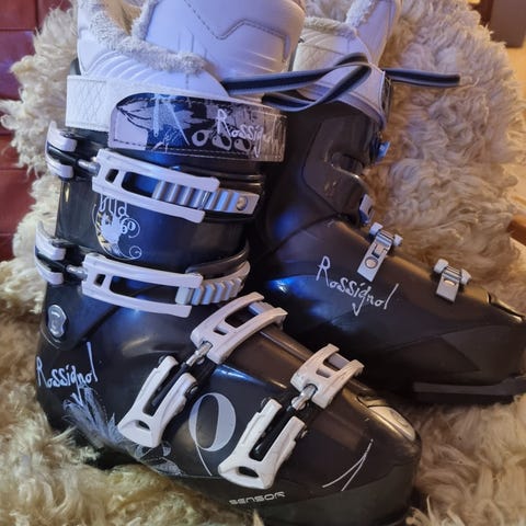 Selger pent brukte Rossignol alpin/slalåmstøvler i størrelse 24,5-25,5. Jeg tror støvlene er små i størrelsen og tilsvarer ca Eur str 39. Selve sålen er 25cm lang (se bilde).