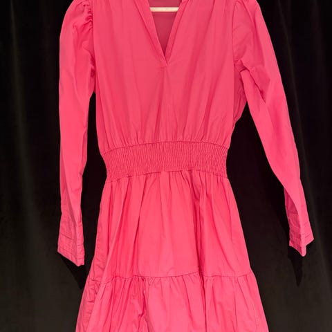 Kjole i bomull str L. Ca 90 cm lang. Lommer i sidene og strikk i ermene. Jeg har sydd kjolen selv så den er helt unik!