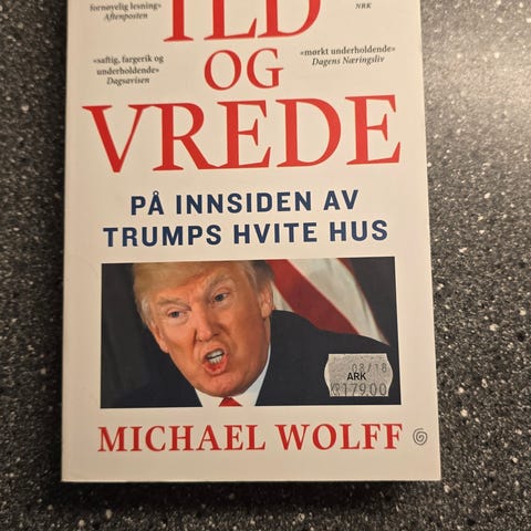 1) Michael Wolff – «Ild og vrede: På innsiden av Trumps hvite hus». Norsk utgave av «Fire and Fury», utgitt av Kagge Forlag 2018. Innbundet bok om Donald Trumps presidentperiode og Det hvite hus.