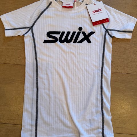 Swix Roadline RaceX t-skjorte for herre med kort erm i størrelse S. Trøyen er hvit med røde detaljer og stor Swix-logo på brystet. Lett og teknisk stoff som egner seg til ulike typer trening og aktivitet. Passform og snitt er tilpasset menn. Kan brukes som innerste lag eller alene ved trening og fritid. Prisen er per stykk og jeg har flere. Hentes på Løren i Oslo eller sendes