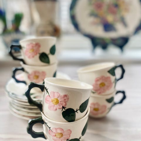 servise sevice porselen keramikk fajanse fayance kaffekopp kopper krus retro vintage 60 tall 70 tall grandmacore granny core blomsterdekor botanisk 25