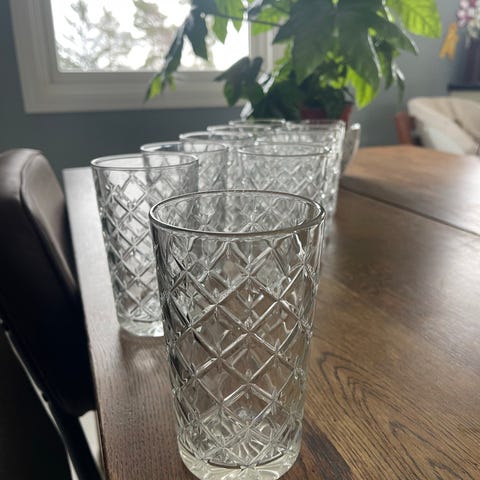 5 stettglass bare stått til pynt selges for 100 kr og 12 drikkeglass lite brukt 100 kr