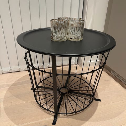 Svart farge og plastikk sete😊 lette å holde rene og gode å sitte på😊