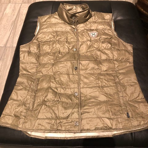 Jean Paul dunvest for dame i beige farge, størrelse one size. Vesten er vattert med dun og har høy krage for ekstra varme.Har justerbare stropper nederst for tilpasning av passform. Jean Paul logo bak i refleks trykk. Noe lengre bak Lengde bak 65 cm fra kragen og ned, lengde foran 61 cm. Kan sende hvis ønskelig