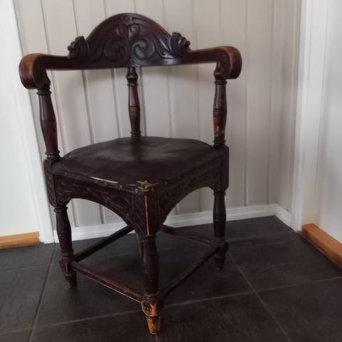 Lysestaken er laget i tre med original forgylling. Den har aldersrelatert slitasje i overflaten, med noe gjennomskinn av grunning/treverk enkelte steder, noe som er normalt for alder og utførelse. Rikt detaljert med vakker patina.