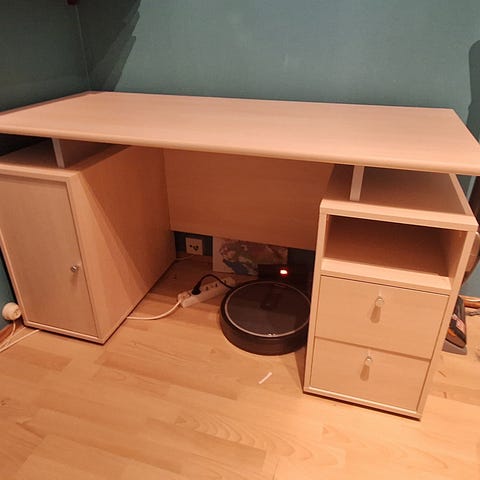 Det er føtter på ene siden og veggfeste på andre siden.Også et til som kan festes på midten.