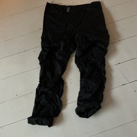 Buksene er svarte og laget i polyester.
