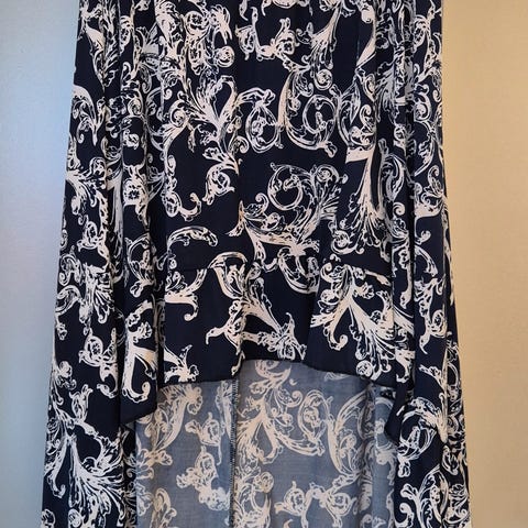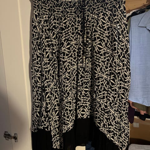 Lekkert Rodier skjørt i grått og sort, foret i sort vises i nederkant. Behagelig lett å ha på seg og har god vidde.