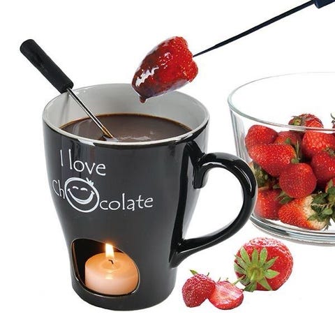 Sjokolade fon-due kopp fra Modern House med to spyd til frukt eller marshmallows med plass for telys. Perfekt til en kosekveld for to personer. To spyd til hver kopp. Helt nye - aldri brukt.
