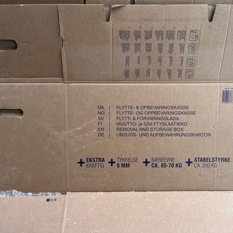 Flytteesker og pappesker blandet størrelser