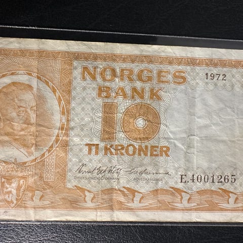10 kr seddel Norge 1970, serie W Pen seddel (4324 BÆ)