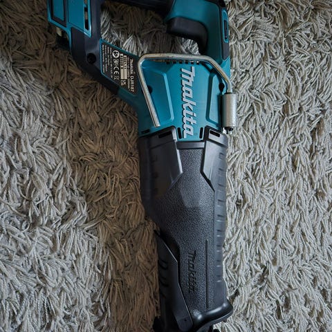 Makita bajonettsag i blå og svart utførelse. Batteridrevet modell med ergonomisk håndtak og gummiert grep for bedre kontroll under arbeid. Egnet til kapping av treverk, metall og annet byggemateriale, avhengig av valgt materiale