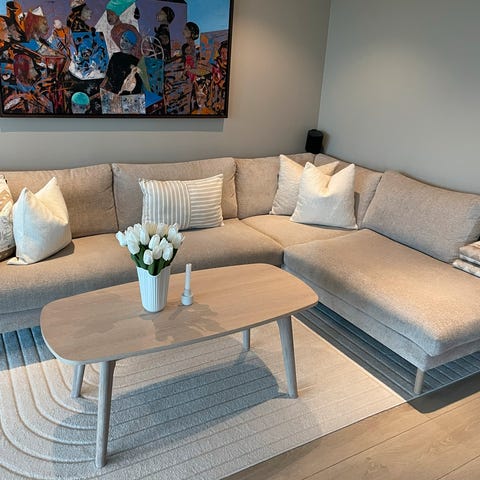 Her får du en sofa med masse plass som er god å sitte i. Nypris på tilsvarende sofa i dag er 106 923kr.