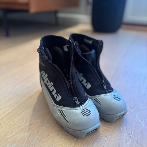 Passer til klassisk og skøyting. Normal bruksslitasje. Glidelåsene fungerer fint. Str 35