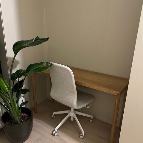 Skrivebordet ble kjøpt nytt i 2024, og er pent brukt (kan ikke se noen bruksmerker eller skader).