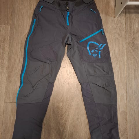 Norrøna Fjørå turbukse i mørk blå farge. Buksen har flere glidelåslommer foran og detaljer i kontrastfarge. Modellen er en teknisk bukse med formsydde knær og glidelås nederst på bena. Passer til friluftsaktiviteter som tur og sykling. Materialet er lett og funksjonelt syntetisk stoff som tørker raskt og gir god bevegelsesfrihet.