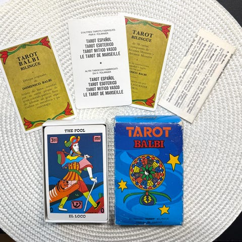 Le Tarot de Gulliver, fransk. Ikke brukt, men kortene “edged” i orange farge av meg. Se bilde