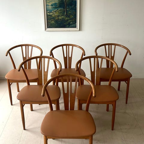 Seks vintage danske spisestue stoler i heltre bøk