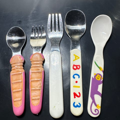 Bestikk i 3 deler. 100% matvaresikker silikon (LFBG sertifisert) og rustfritt stål. Fri for BPA og FTALAT. Tåler oppvaskmaskin. Farge: Sand. Originalemballasje følger med.