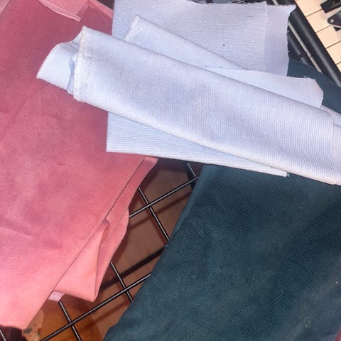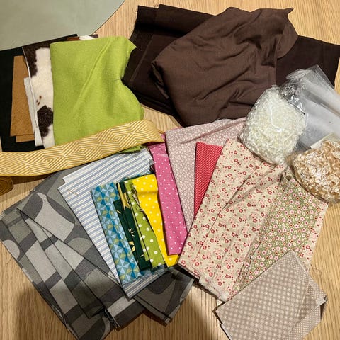 Stoff gies bort samlet til den som har bruk for det. Diverse stoffer, duker, brikker, heklet. Må hentes på Tiller.