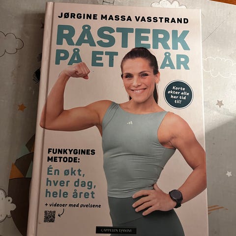Jørgine Massa Vasstrand Råsterk hjemme treningsbok. Boken inneholder treningsprogrammer til hjemmetrening, med økter på blant annet 10 og 20 minutter. Den viser øvelser med egen kroppsvekt og enkelt utstyr, illustrert med bilder og forklarende tekst. Boken er innbundet og skrevet på norsk, og egner seg for personer som ønsker strukturert styrke- og kondisjonstrening hjemme.