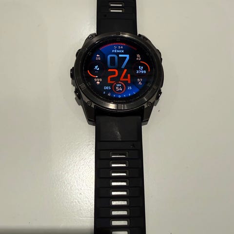 Garmin Fenix 8 Solar smartklokke med 47 mm urkasse i svart. Klokken har rund skjerm og silikonreim med justerbar lengde. Modellen støtter solcellelading (Solar) som kan forlenge batteritiden. Egnet til bruk ved trening, tur og hverdagsaktiviteter, med funksjoner som aktivitetsmåling og pulsmåling fra håndleddet. Unisex-modell som passer både menn og kvinner.