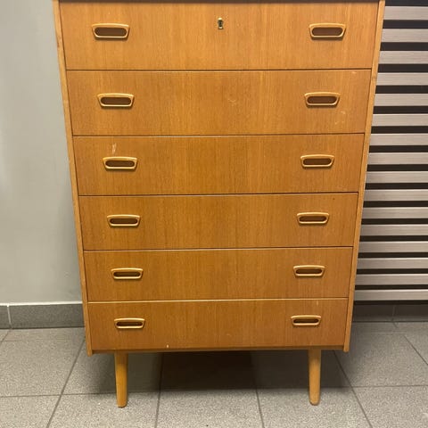 Retro 5 skuffers kommode i teak i fin stand fra 70 tallet som er malt i matt svar. Kan fint males på nytt i ønsket farge.