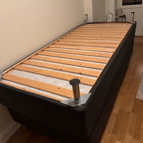 Mangler ben og må hentes 6 etg uten heis. Må være 2 personer for å hente.