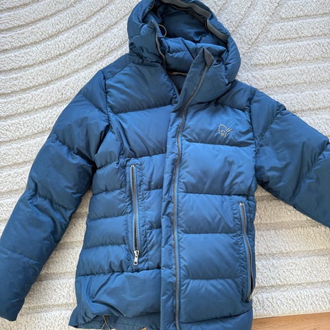 Selger en Norrøna dunjakke i str. XS. Jakken er godt brukt, men har ingen skader. Fargen er mer dempet blå enn på bildene.