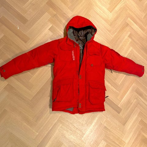 Salomon vinterjakke for herre i størrelse L. Jakken er flerfarget med kontrastfelt, og er laget i polyester. Modellen har hette og glidelåslukking foran. Det er flere glidelåslommer i front for oppbevaring. Egnet som ytterjakke i vinterhalvåret og til utendørsaktiviteter i kaldt vær.