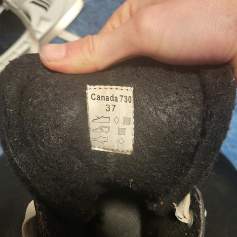 Jofa (str 40)og Ranger (str 37) ishockeyskøyter i svart farge. Klassiske ishockeyskøyter med snøring og hvit skøytestålramme. Passer til bruk på isbane til trening eller fritidsbruk i ishockey. 150 pr par