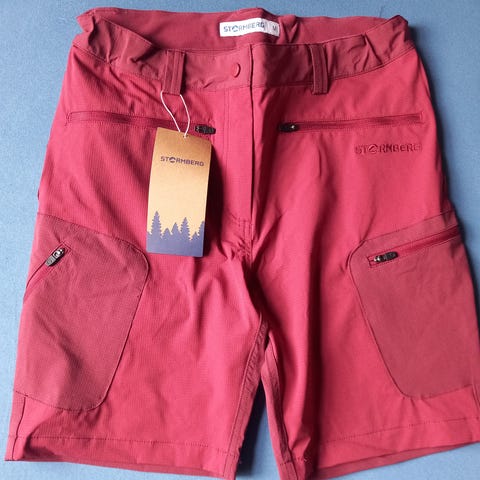 Stormberg turshorts i størrelse L. Shortsen er i mørk blå farge og laget i et lett og funksjonelt materiale egnet for fottur og friluftsbruk. Den har elastisk linning med knapp og glidelås, samt flere glidelåslommer i kontrastfarge foran for oppbevaring av småting. Passer til tur, camping og annet friluftsliv.